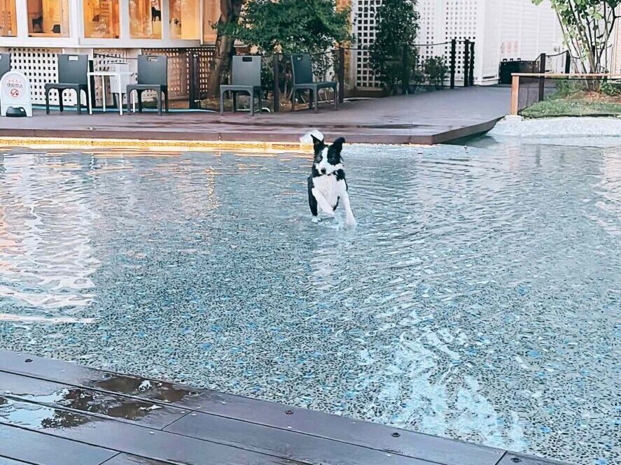 ここは小型犬でもギリギリ足がつく程度の大きなプールです。人間も入れますよ!走り回ったりして大興奮!夜はライトが散りばめられており、愛犬のオレオは、必死にライトを追っかけてました!