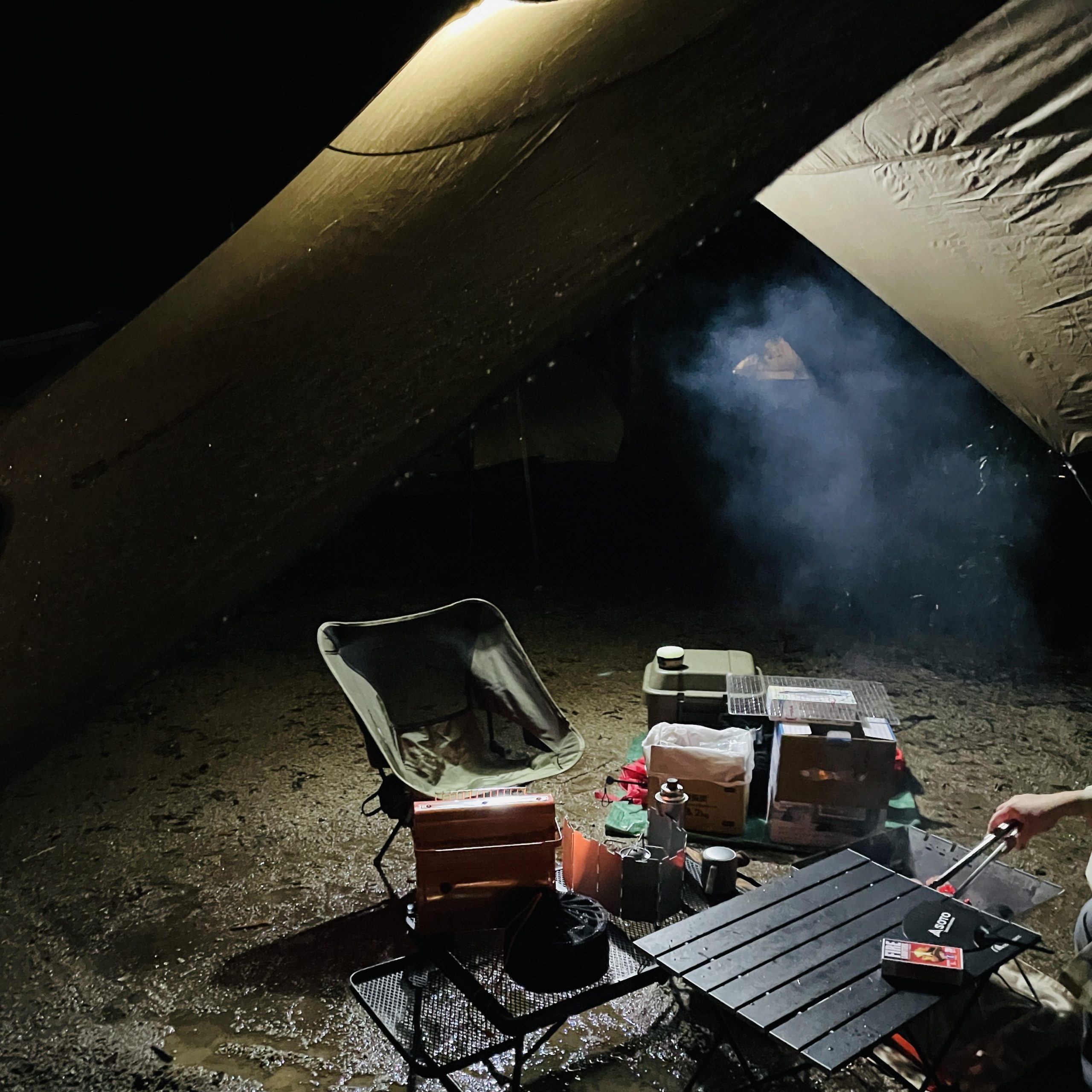 雨の中でキャンプをしていると、どうしても服や体が冷えやすくなります。ストーブや焚き火台があれば、冷えた体を温められ、濡れた衣類を乾かすことも可能です。私もストーブで濡れたズボンを乾かし、快適に過ごせました。